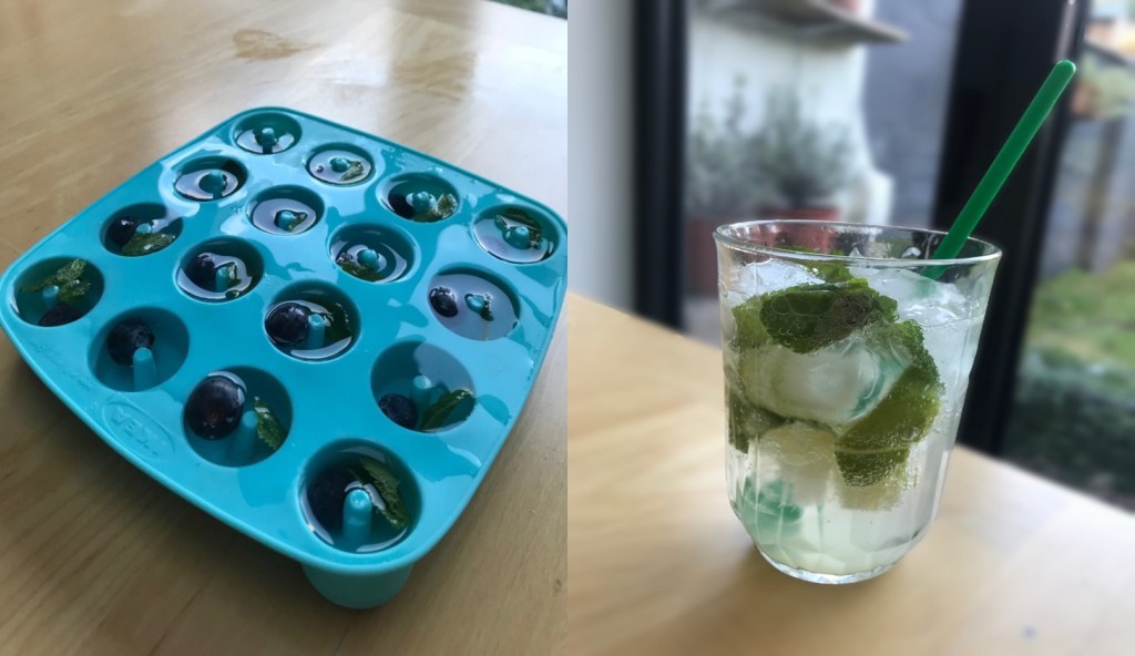 Mint can improve the taste of water and aid your daily intake, I froze leaves in ice cubes along with blueberries to use in my morning glass, this is a particularly good way of utilising fruit and vegetables coming to the end of their shelf life. I also discovered that I could make a delicious virgin mojito by muddling mint leaves with chunks of lime and a teaspoon of brown sugar before adding plenty of ice and topping with soda water, it was amazingly hard to tell the difference from a real mojito and a great alternative if you’re trying to cut down on your alcohol intake.