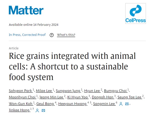 1. Park, S., et al., Rice grains integrated with animal cells: A shortcut to a sustainable food system. . Matter, 2024. 6(12): p. 4401-4407.