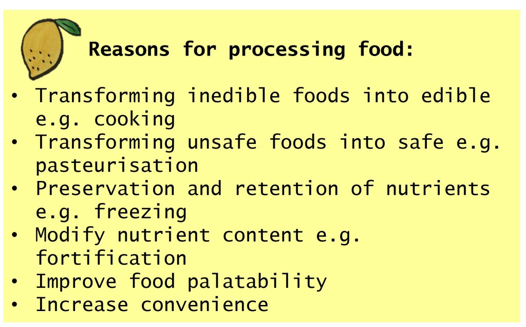 It is perhaps first helpful to remind ourselves of the reasons why food needs to be processed in the first place: