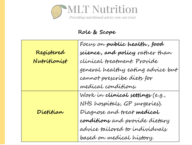 One question that comes up quite often is what is the difference between a Nutritionist and a Dietitian? the main areas are as follows: