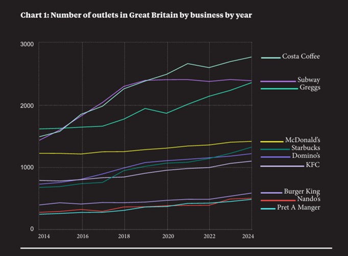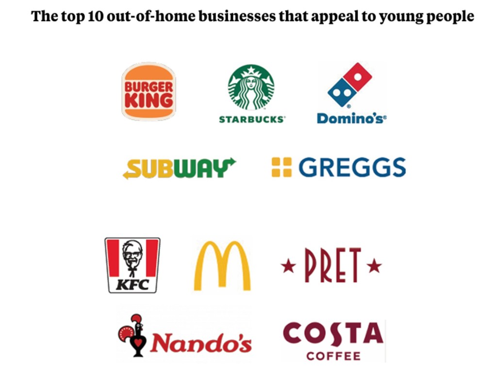 - The top 10 most popular food chains with young people continued to open more outlets in the UK over the last 10 years. Growth ranged from 16% to 93%, the fast-food outlets grew by almost 50% and with the exception of Subway this upward trajectory shows no sign of levelling off.