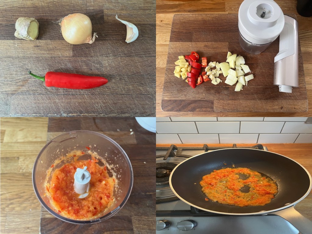 - Take a clove of garlic, small onion and chilli and mix to a paste with a drop of water using a blender or grater.