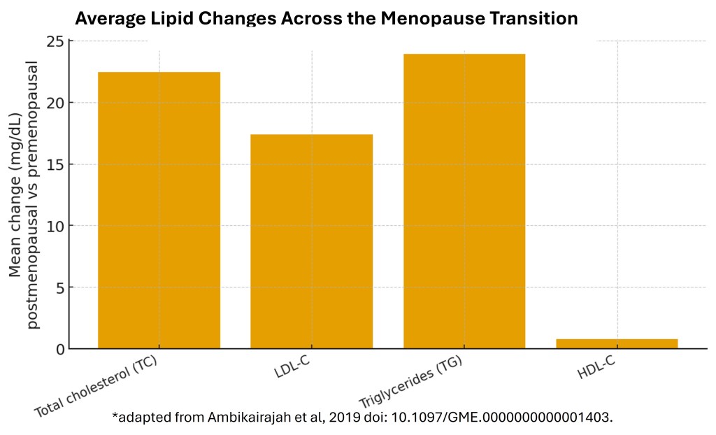 Ambikairajah, A., Walsh, E., & Cherbuin, N. (2019). Lipid profile differences during menopause: a review with meta-analysis. Menopause, 26(11), 1327-1333. https://doi.org/10.1097/gme.0000000000001403