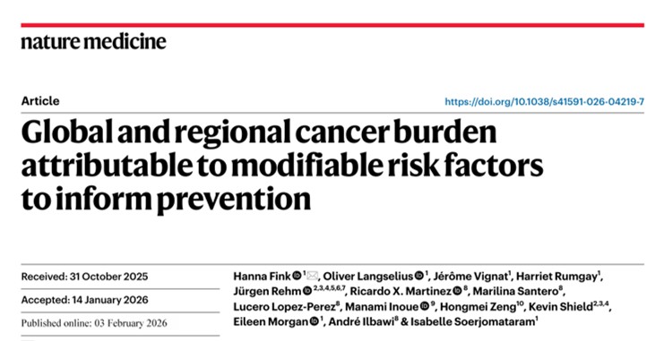 Fink, H., Langselius, O., Vignat, J., Rumgay, H., Rehm, J., Martinez, R. X., … & Soerjomataram, I. (2026). Global and regional cancer burden attributable to modifiable risk factors to inform prevention. Nature Medicine, 1-10.